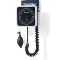 SKU: 1709847670-01 Welch Allyn 767 Wall Aneroid Sphygmomanometer with Size-11 Adult, FlexiPort Reusable, 2-Tube Cuff; Premium Inflation Bulb and Valve, Coiled Tube (8.0 ft/2.4 m)*