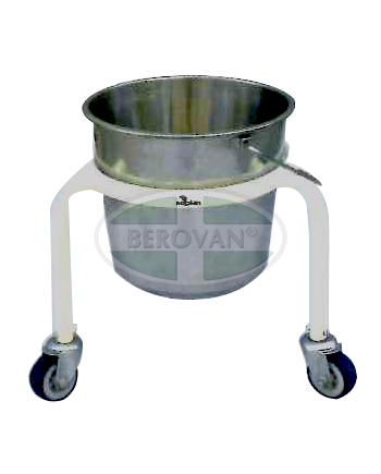 Mild steel tubular pipe frame-work mounted on 75mm diameter castor wheels. Supplied with a stainless steel bucket. Finished in pre-treated epoxy powder coating.