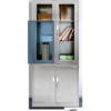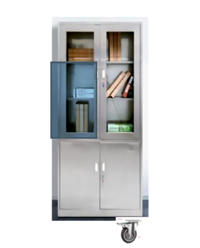 - Stainless steel sheet with two (2) sides and back, one glass door framed with stainless steel sheet and with lock