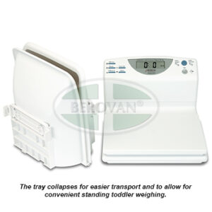 Providing accurateand safe weighing of infants and toddlers, Detecto‘s model 8440 digital scale is ideal for home health and medical clinics. The 8440’s weighing tray may be removed for standing toddler weighing and for easier transport. The 1-in / 25-mm high LCD offers pounds and kilograms readouts plus features a built-in clock. The scale’s Weight Difference key provides the weight difference between the current weight on the scale and a saved weight in memory along with its time and date.