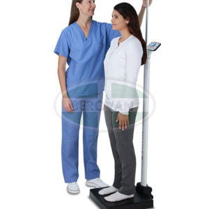 DETECTO’s apex® eye-level digital physician scales feature inline mechanical height rods and an extra-wide, flat platform measuring 17 in W x 17 in D x 2.75 in H. The apex® scale features 600 lb x 0.2 lb / 300 kg x 0.1 kg capacity, 0.75-inch-high clinical-blue LCD weight readouts, BMI calculation, AC or battery power (AC adapter included on some models), 2 RS232 serial ports and 1 micro USB-B port, HL7 IEEE 11073 compliance, Wi-Fi and Welch Allyn connectivity (available on some models), dual wheels for transport, sturdy column construction, integral bubble level, and they assemble quickly right out of the box in just a few easy seconds (no tools required).