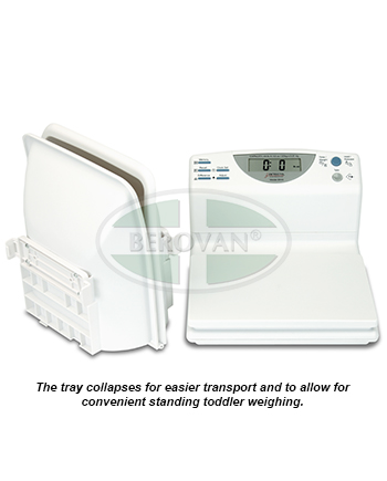 Providing accurateand safe weighing of infants and toddlers, Detecto's model 8440 digital scale is ideal for home health and medical clinics. The 8440's weighing tray may be removed for standing toddler weighing and for easier transport. The 1-in / 25-mm high LCD offers pounds and kilograms readouts plus features a built-in clock. The scale's Weight Difference key provides the weight difference between the current weight on the scale and a saved weight in memory along with its time and date.
