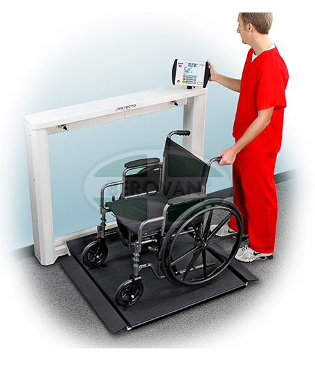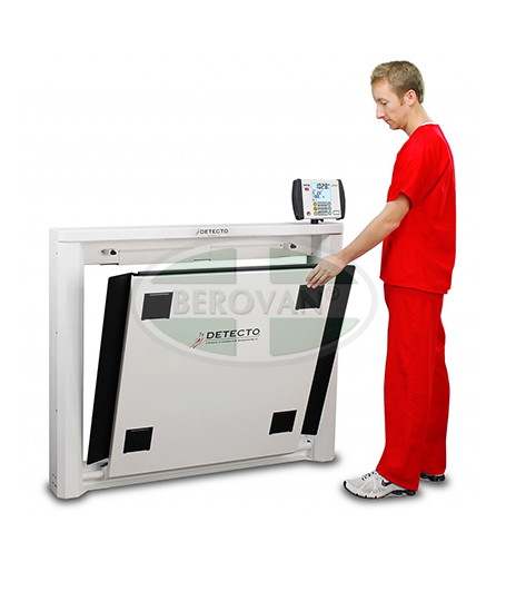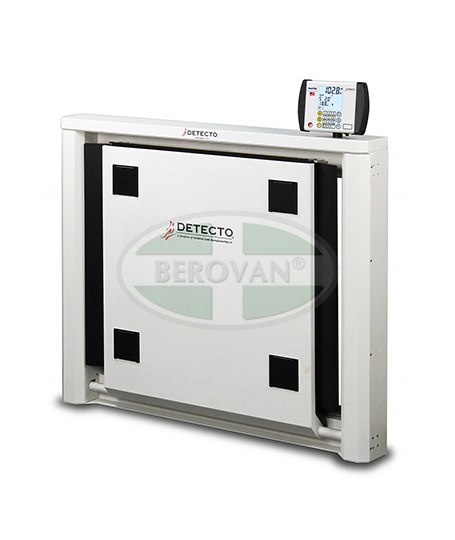 Detecto’s 7550 wall-mount wheelchair scale features a unique fold-up storage design that saves space when not in use. The 7550 easily accommodates most wheelchairs with its spacious 32.3-in W x 33-in D (82-cm W x 84-cm D) platform, and yet requires very little floor space when folded up. The slim 6.6-inch / 17-cm profile takes up minimal space when installed in a medical facility hallway, clinical office, or patient room. When you’re ready to weigh, simply lower the platform and the gas spring lifting mechanism will gently lower it into place. The patient may be easily rolled onto the scale, and a platform lip will hold the wheelchair securely in place for weighing. This scale features a high 1,000 lb x 0.2 lb / 450 kg x 0.1 kg capacity for bariatric weighing, two-way ramps, and optional Wi-Fi for EMR/EHR.